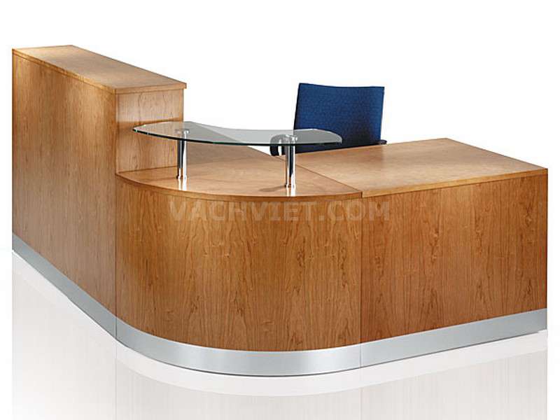 Mẫu thiết kế quầy tiếp tân cho cao ốc văn phòng cho 1 nhân viên tiếp tân ngồi giao dịch