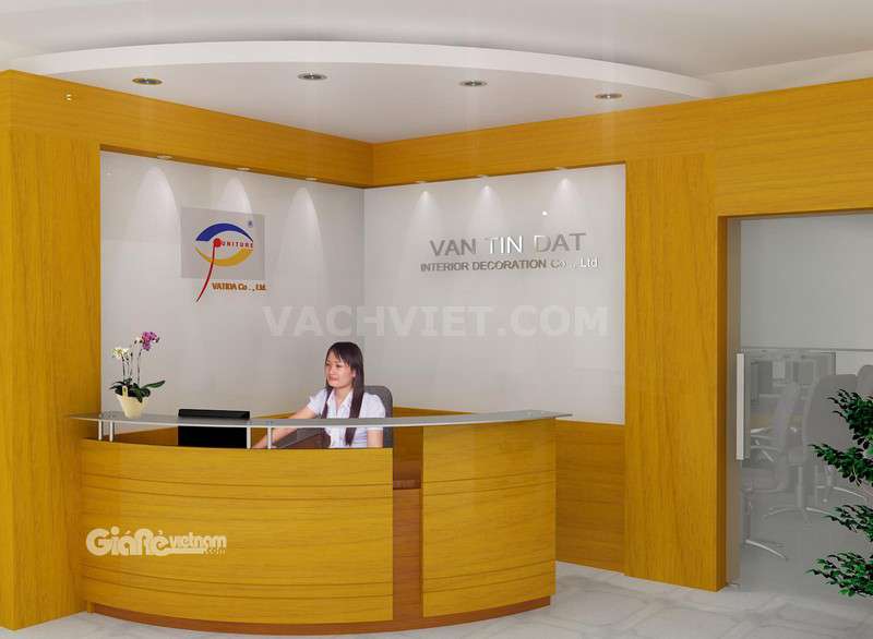 Quầy tiếp tân 04Mẫu tiếp tân cho các công ty ở một tòa nhà riêng có bàn làm việc tiếp khách trước quầy